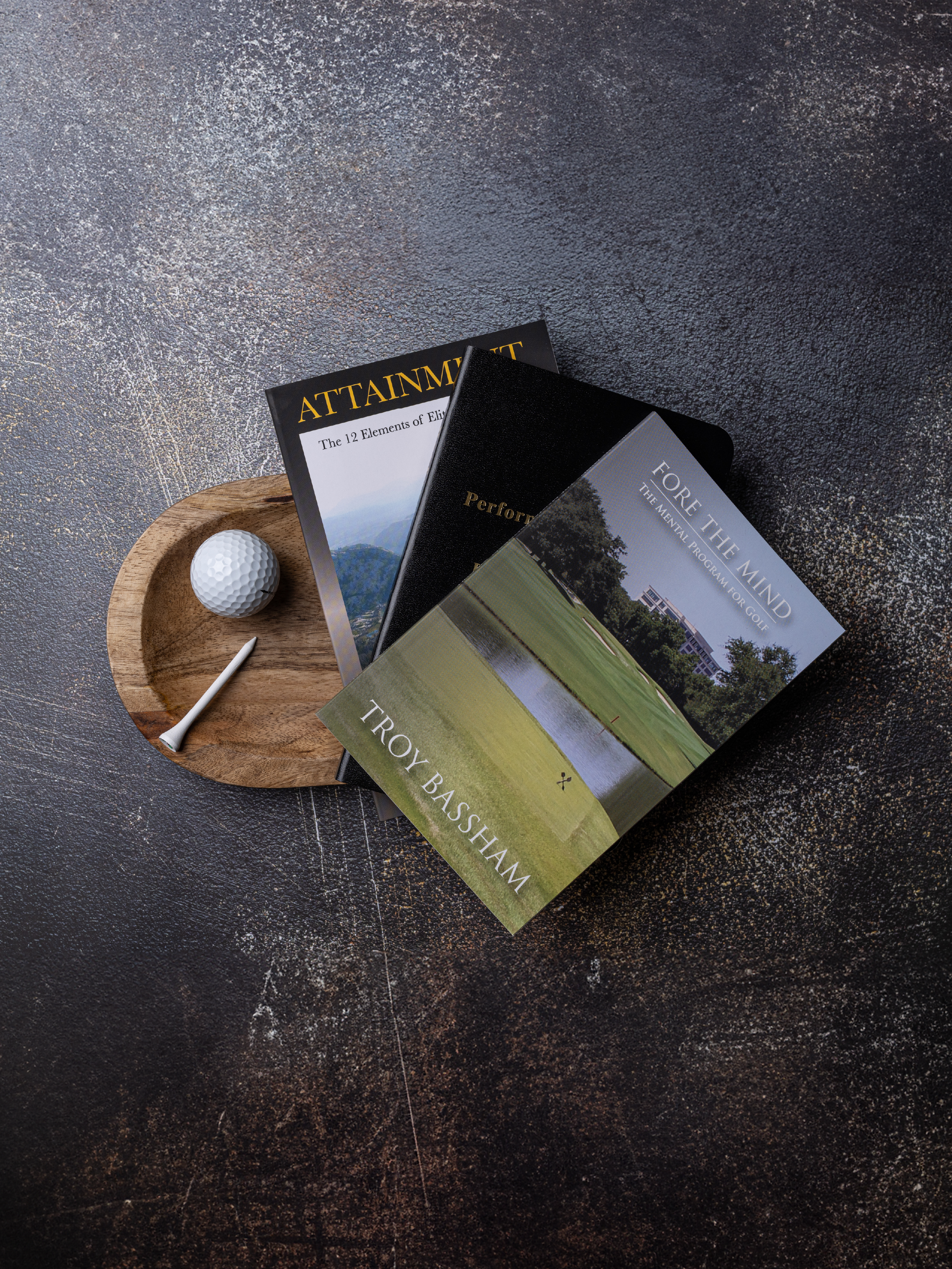 Fore The Mind - Lessons from an unknown mentor transform a competitive player’s mental approach to golf. Struggling on tour Kevin needs to gain consistency. Written lessons start to appear in his golf bag that transform his game from inconsistent to reliable. Troy Bassham uses this short, unique and compelling story to grab the attention of the reader while outlining the Mental Management Mental Program for competitive golf.